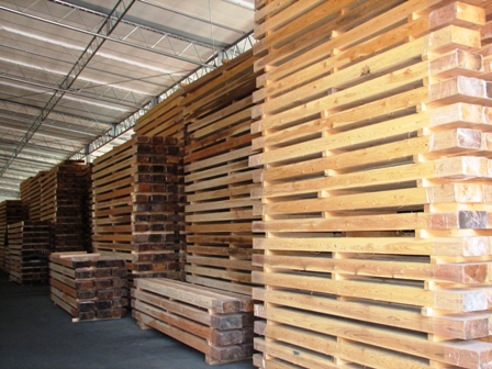 その自然乾燥させた丸太を製材して、また倉庫の中で木材にまだ含まれている