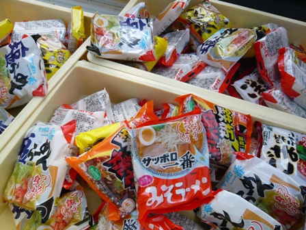 今回は、お餅と一緒にラーメンを撒いたみたいです。