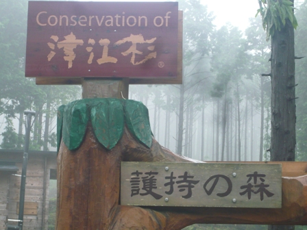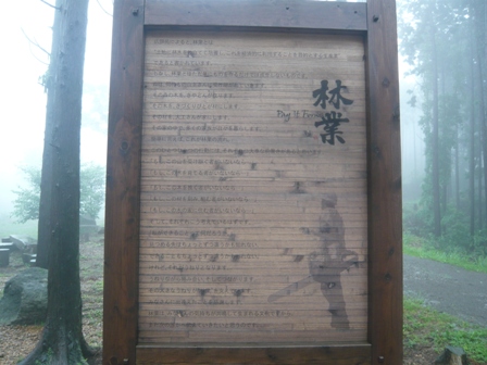 雨に打たれてしんしんと出番を待つ杉の木。雨上がりで霧がかってとても幻想的。