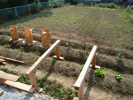 裏の畑には夏野菜が植えられていました、すくすく育て~