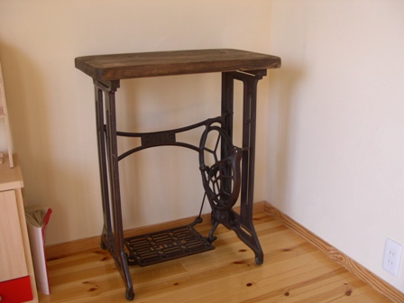 ちょうど近所の旦那さんに頼んでいた、古いミシン台のリペアが完成したとTELがあり皆で受け取りに行ってきまいした