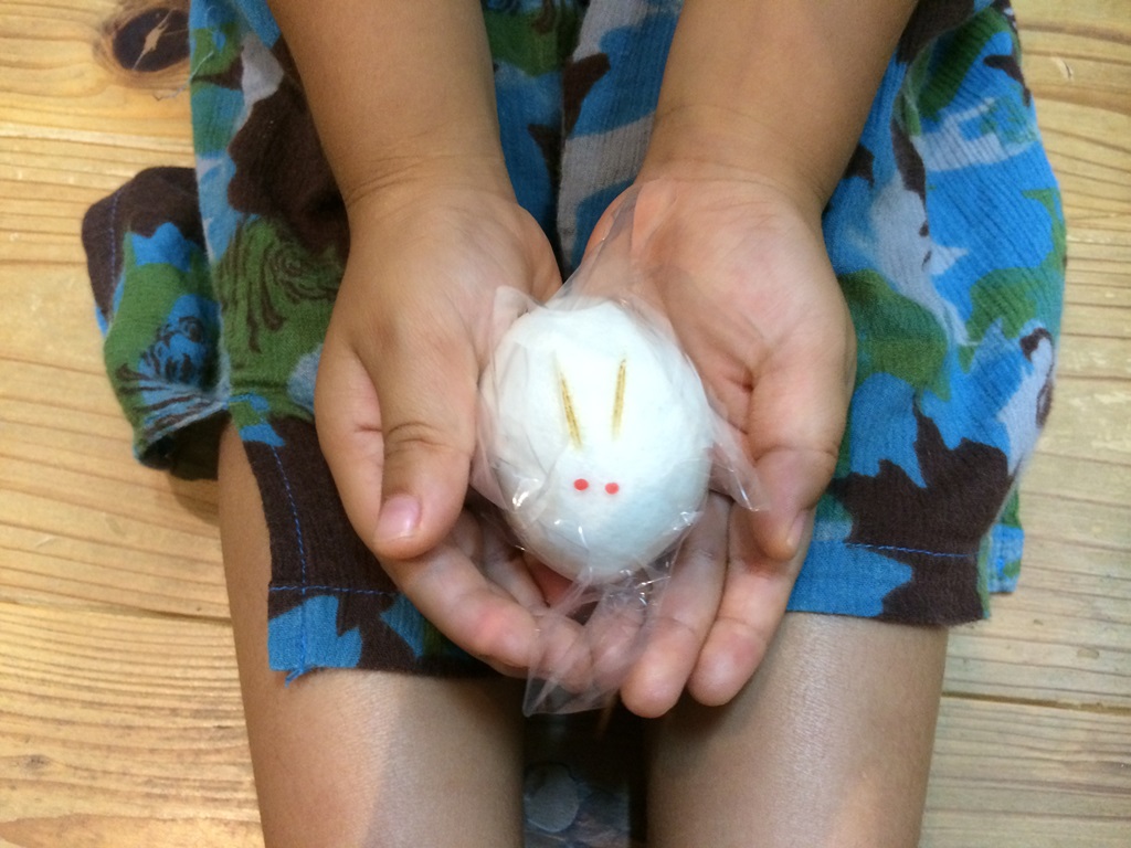 私も息子と一緒にうさぎ饅頭でお月見鑑賞をしました。