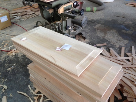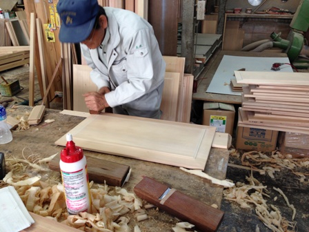 南一ヶ丘の現場に入る建具の鏡板を削り出しているところです。