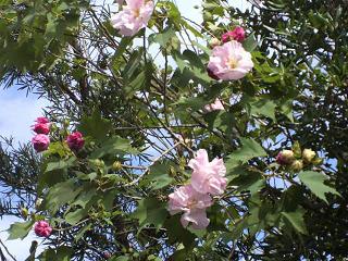 ほろ酔い気分で優雅に咲いている芙蓉の花につい顔が綻びます。