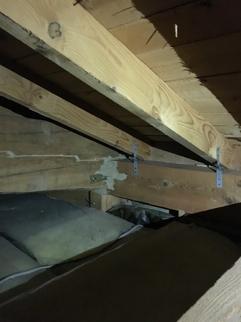施主様の話を伺い、点検口から小屋裏に入ってみると