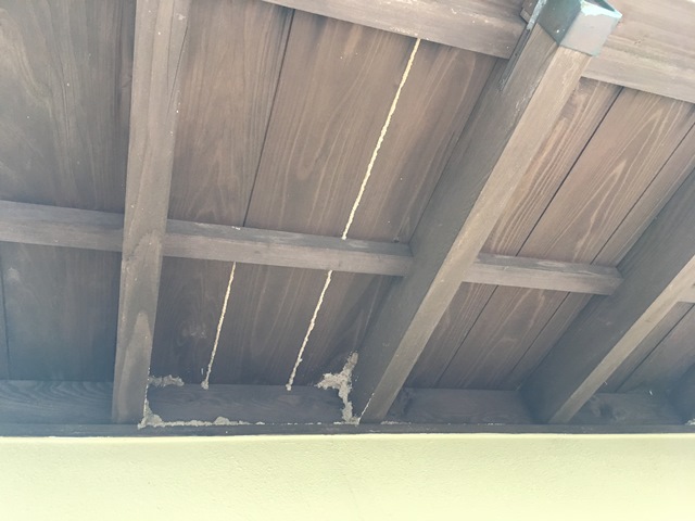 木材に白い土の様な物が付いている部分が、『蟻道』という白蟻の食べながら歩いているトンネルの様な道を発見!!