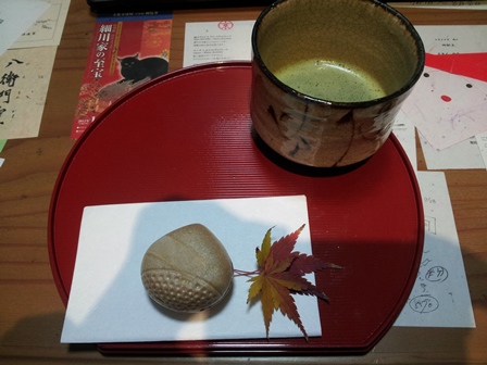母が点ててくれたお茶に栗最中を添えて