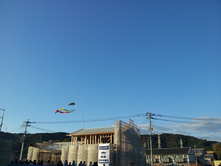 とんびが棟上げが終わると待ち侘びていたように上空を飛び回っていました。