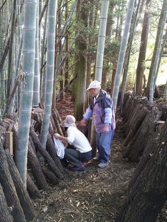 祖父と一緒に椎茸採集