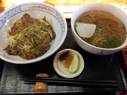 温かいお蕎麦に、他人丼。