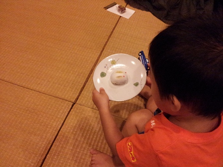 息子くんは可愛いうさぎの茶菓子を堪能していました。
