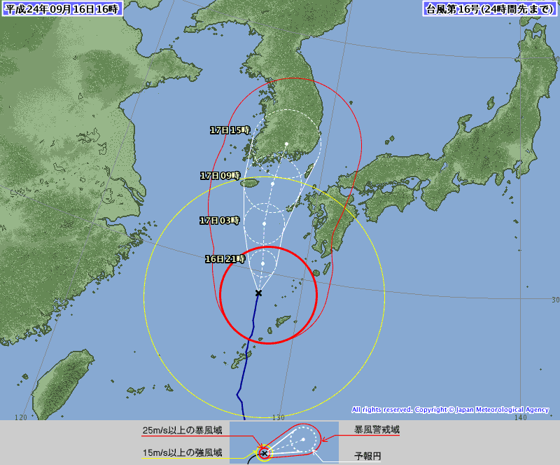 皆様、ご存知の通り台風16号(サンバ)が九州へ向けて接近中ですね。