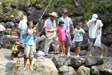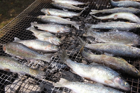 朝から魚釣り、掴み取りの為に鱒の放流をしました。