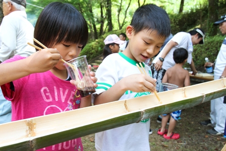 次々に流れてくるそうめんにみんな夢中になっていました、