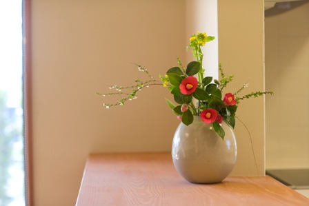 庭に咲く藪椿や侘助を生けさせてもらいました。