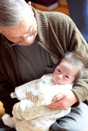 曾おじいちゃんに抱っこされて・・・・