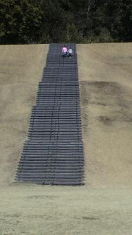 登りきった所に大型の滑り台があって。 あっという間に下界に戻ってきました。